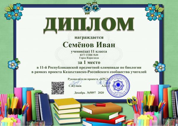 Биология пәнінен Республикалық интернет олипиада жеңімпаздары