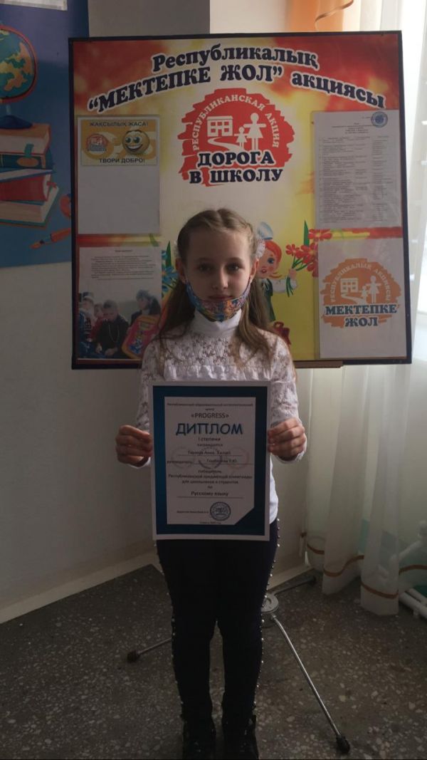 1 Б сынып оқушысы Лангер Оксананы "Русскому язык"," пәнінен Халықаралық олимпиадада жеңіске жеткені үшін құттықтаймыз!