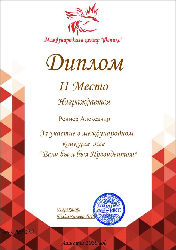"Абай портреті және жыл мезгілдері" атты байқауда ІІІ орынды иеленгені үшін Қабылтай Арон Рүстемұлы марапатталады.