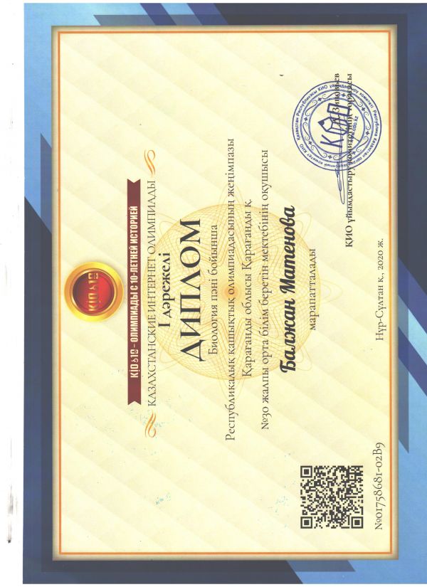 15 мая прошёл городской онлайн-форум "Билет в будущее". Свои работы представили: ученица 9 класса " Б" Апачева Дарина (руководитель Корчевная Т.П.)и учитель казахского языка и ли…