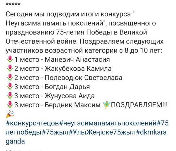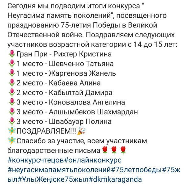 Поздравляем победительницу городского конкурса чтецов «Неугасима память поколений» Маневич Анастасию. Прими искренние поздравления, Анастасия!!