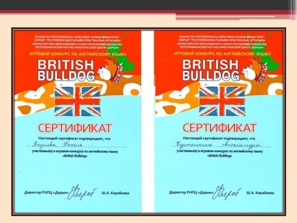 Ученики нашей школы награждены сертификатами за активное участие в игровом конкурсе по английскому языку «BritishBulldog».