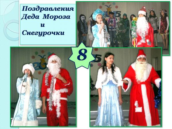 27.12.2014 г. проведено праздничное мероприятие, посвященное Новому году. Учащиеся 7-9 классов участвовали в конкурсах "Дед Мороз и Снегурочка", "Новогодняя ёлочка", "…