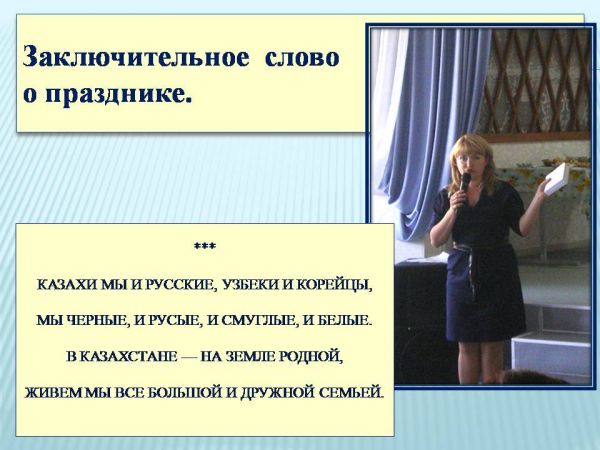 22.09.2014 г. проведено праздничное мероприятие, посвященное Дню языков народов Казахстана. Ученики 7-9 классов подготовили выступления разных национальностей, продемонстрировали традиции и обычаи в…