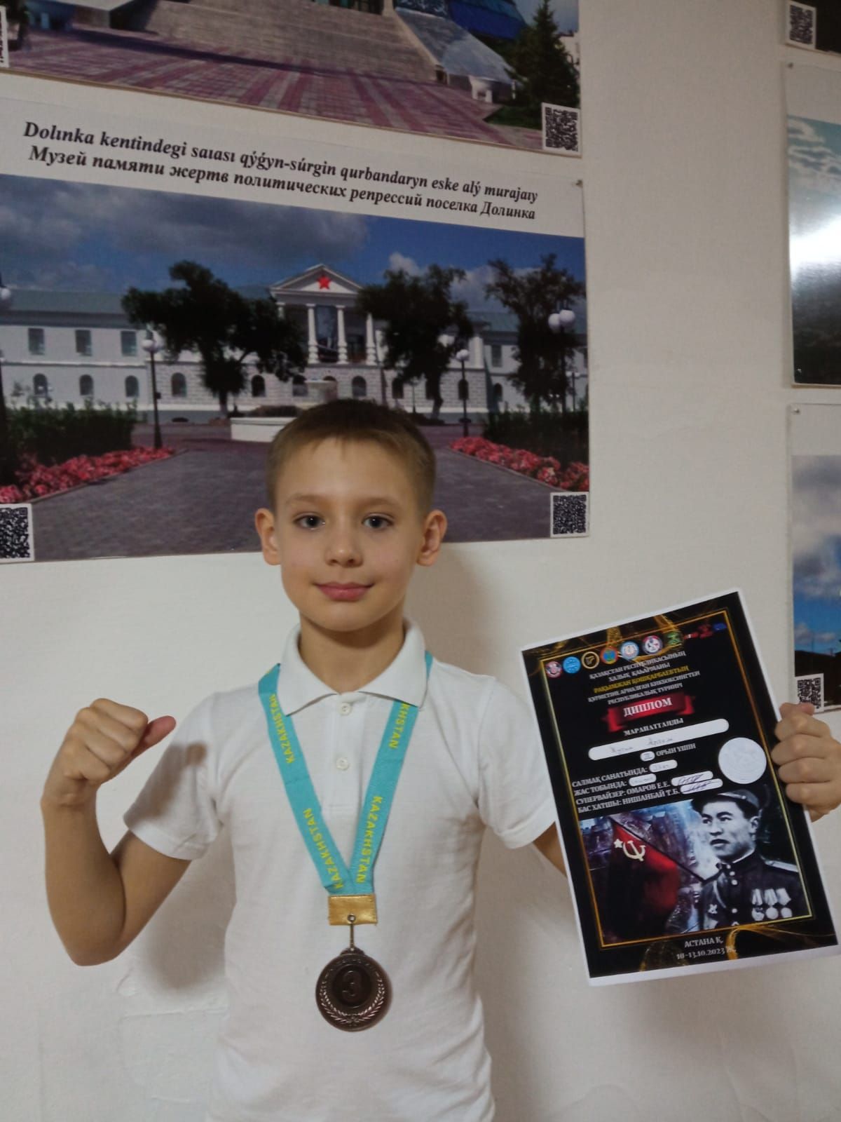 Поздравляем ученика 3"В" класса, Хутина Артёма, за занятое 3-е место в Республиканском турнире по кик-боксингу, г.Астана!!!