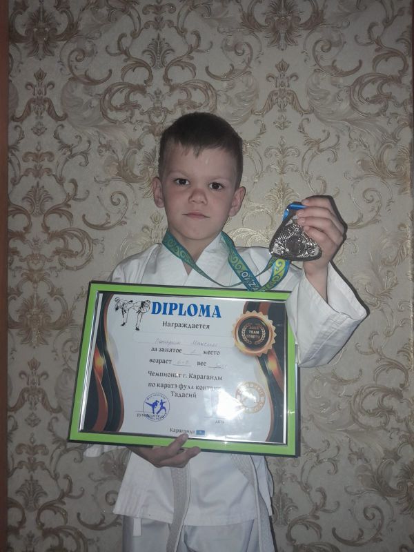 Поздравляем, ученика 1 "В" класса. Понарина Максима за занятое 2 место в чемпионате г.Караганды по каратэ фулл контакт Тадасий. Желаем дальнейших побед!