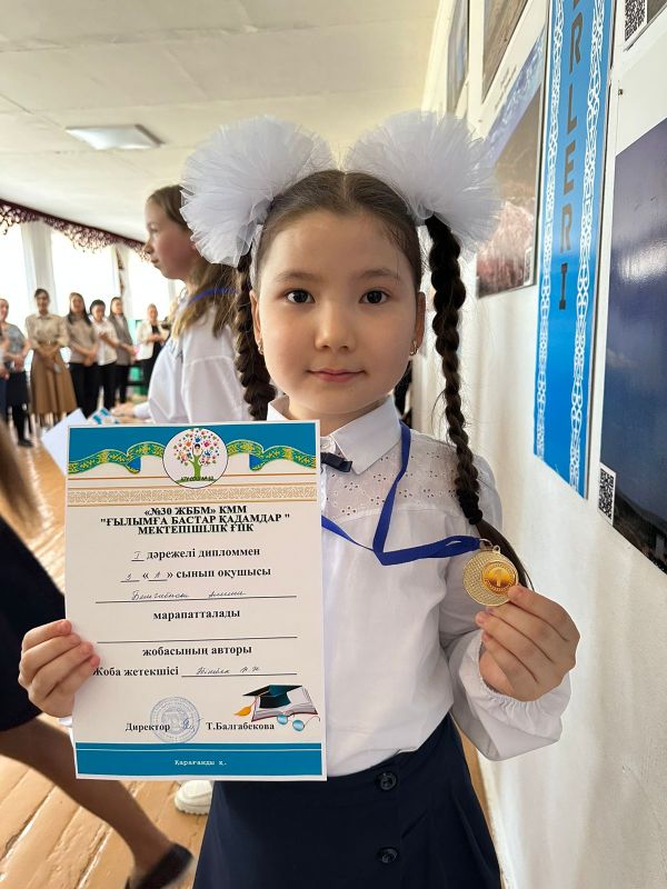 2 А сынып оқушысы Қонысбай Айзере Ғылыми практикалық жоба аясында 3 орынға ие болды! Жарайсың!