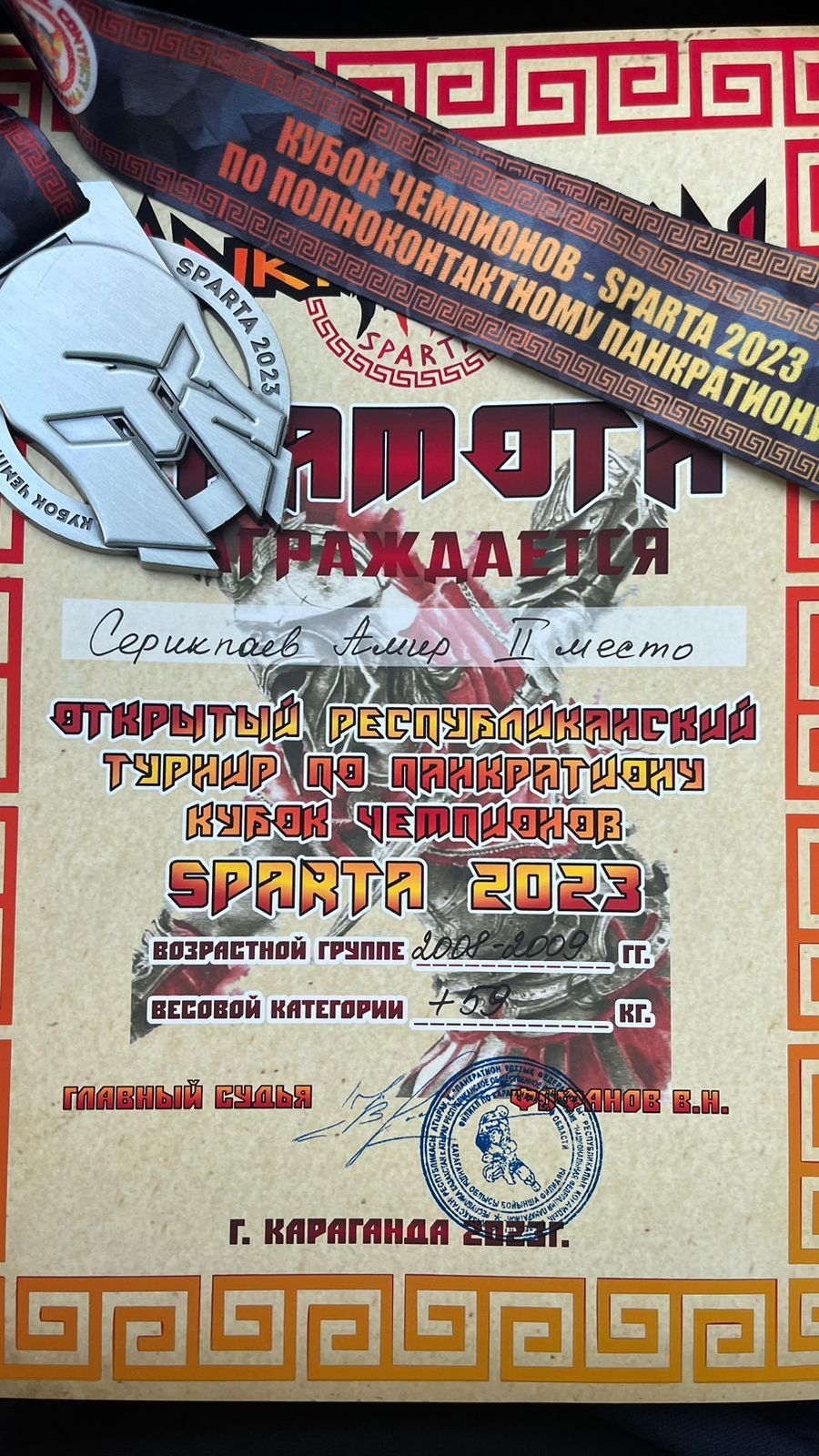 Ученик 8 «В» класса Серикпаев Амир занял 2 место в открытом Республиканском турнире по панкратиону кубок чемпионов «Sparta 2023».