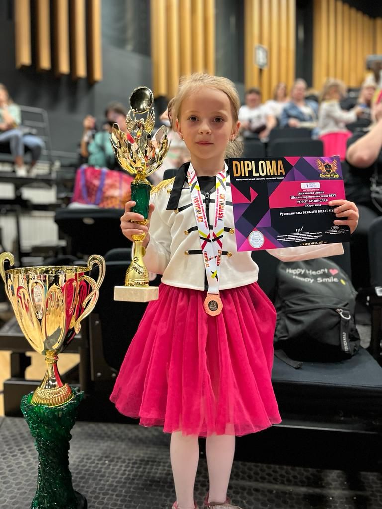 Поздравляем ученицу 1 б класса Аржанцеву Арину, получившую диплом 1 степени в Международном конкурсе по хореографии. Школа современного танца BEST