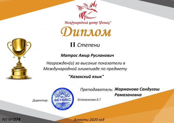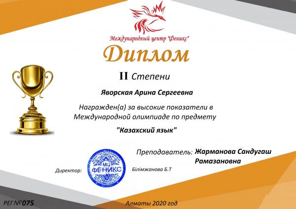 көркем гимнастикадан Тараз қаласындағы ашық онлайн жарыста 2-орынды иеленді. Құттықтаймыз!!!