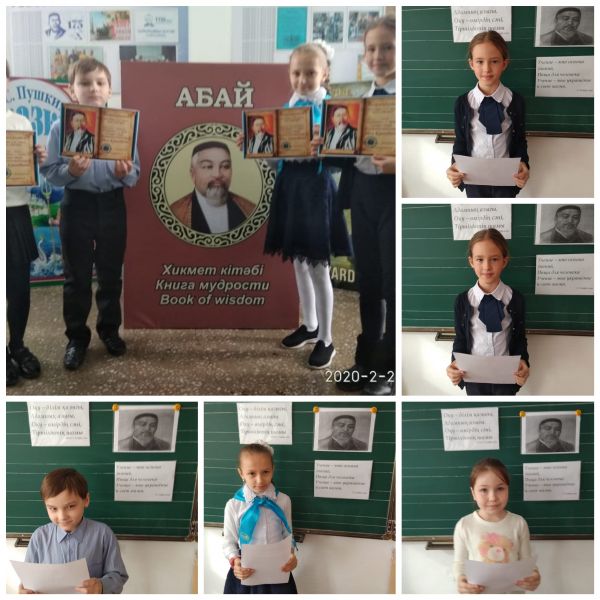 28 ақпанда 3- сыныптар арасында Абай Құнанбаевтың 175 жылдығына орай мәнерлеп оқу сайысы өтті.Оқушылар ұлы Абайдың өлеңдерін оқып ,мақтау қағаздарымен мараппаталды.