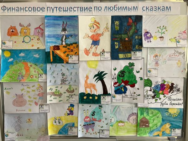 В рамках недели финансовой грамотности организована выставка рисунков учащихся 3 -4 классов «Финансовое путешествие по любимым сказкам».