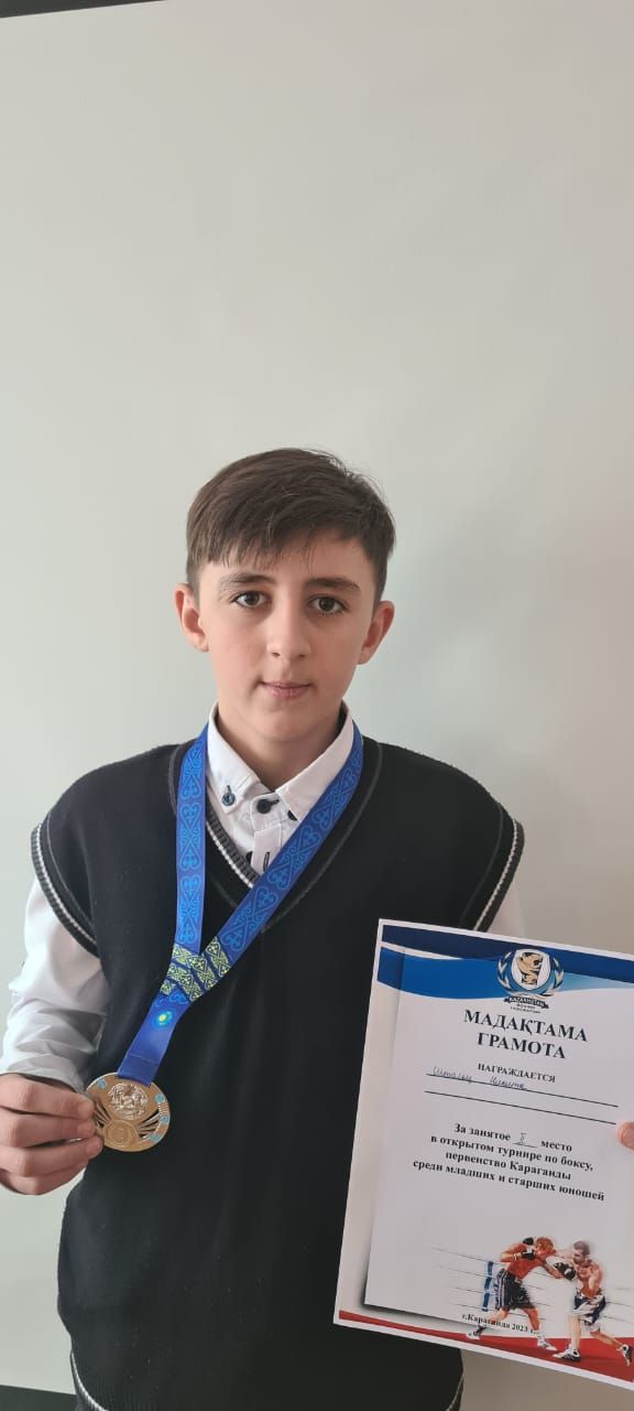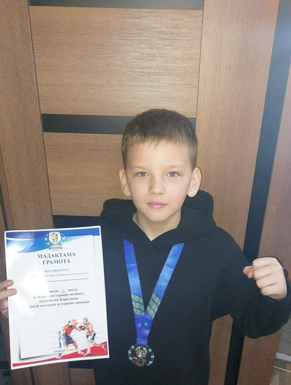 Ученик 5 Г класса, Архангельский Александр. Занял 2 место в открытом турнире по боксу, первенство Караганды среди младших и старших юношей. Поздравляем