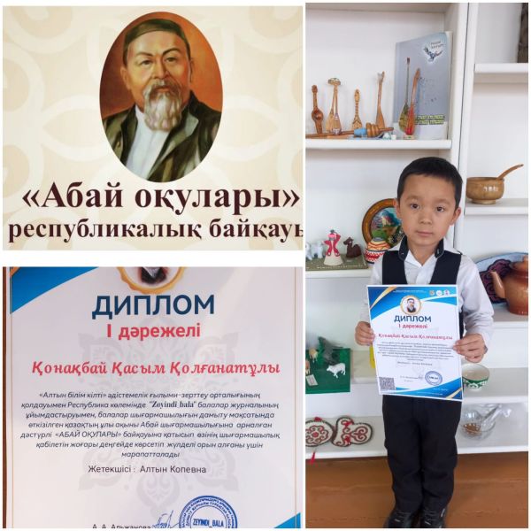 Республикалық "Абай оқулары"байқауына қатысып 1 дәрежелі дипломен мараппаталған 1 "А"сынып оқушысы Қонақбай Қасымды құттықтаймыз !