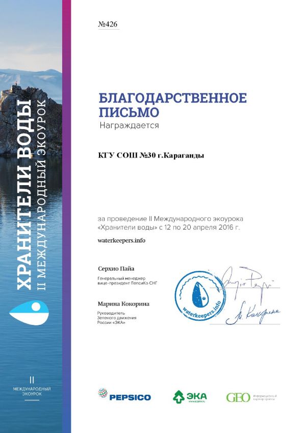Григорьева Ольга Петровна мен Корчевная Татьяна Павловна 7 сынып оқушыларына арналған "Суды қорғаушылар" II Халықаралық сабағын өткізді.