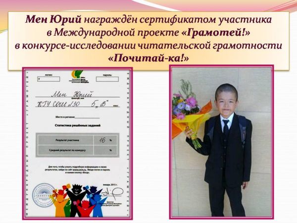 Награждение благодарственными письмами за активное участие в конкурсе-исследования читательской грамотности "Почитай-ка!".