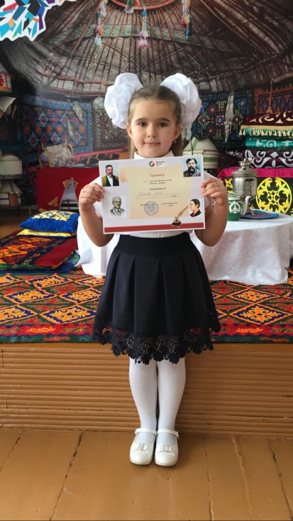 Поздравляем ученицу 1 « Б» класса Макарееву Амину за занятое 1 место в танцевальном конкурсе, посвящённом 110- летию Шары Жиенкуловой