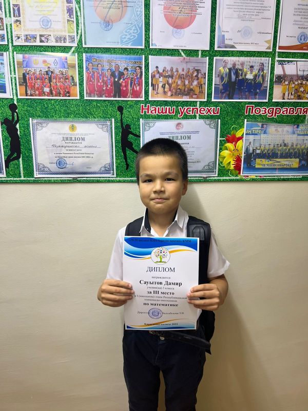 Поздравляем ученика 5 "Г" класса, Сауытова Дамира победителя школьной олимпиады по математике. III место