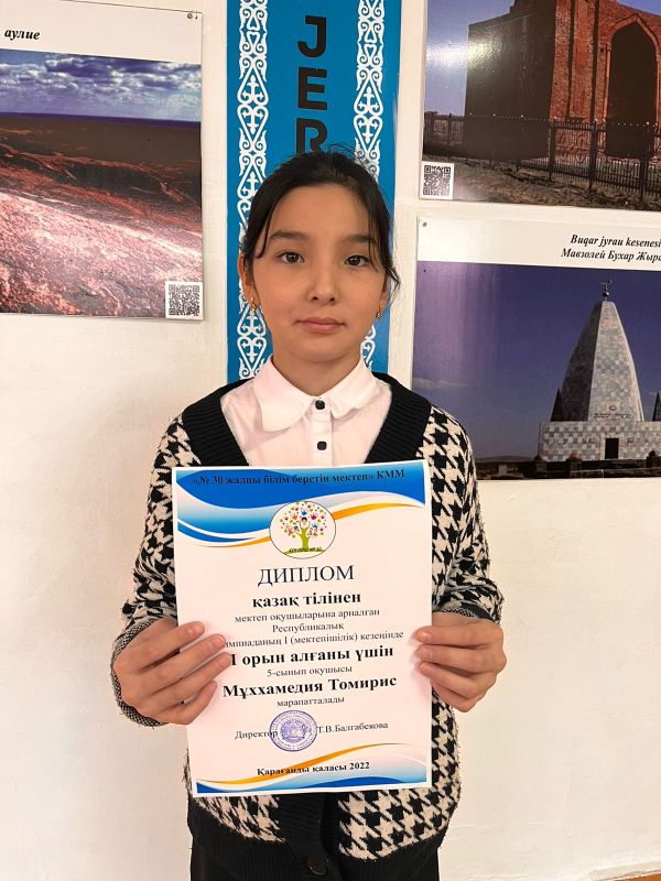 5 “Ә” сынып оқушысы Мухаммедия Тамиристі мектеп олимпиадасында қазақ тілі пәнінен II орын алуымен құттықтаймыз!