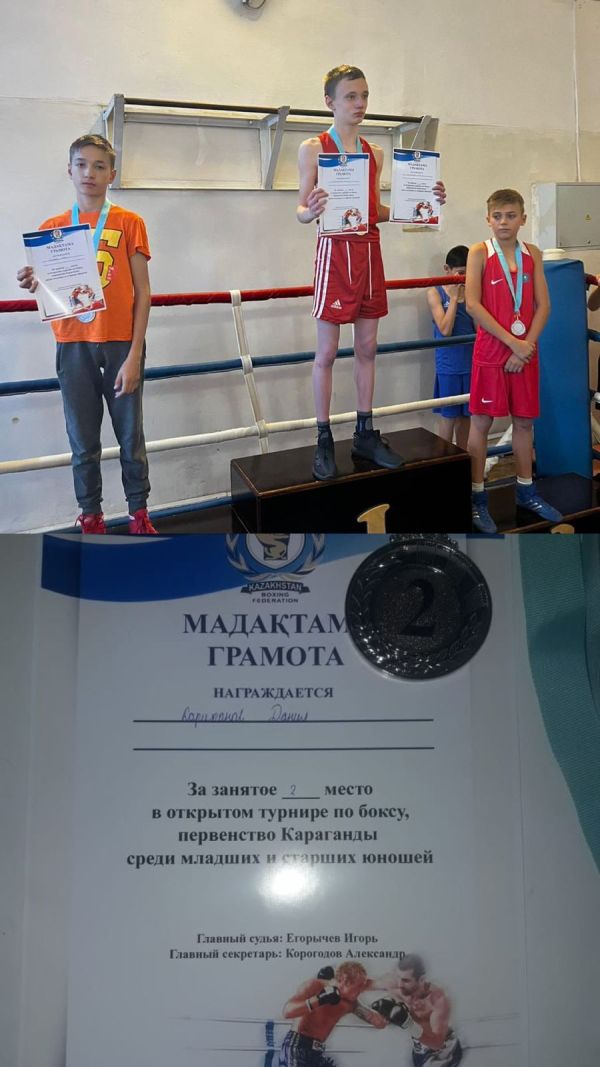 Поздравляем ученика 7 "Г" класса Карипанова Даниила со 2 местом в открытом турнире по боксу! Так держать!