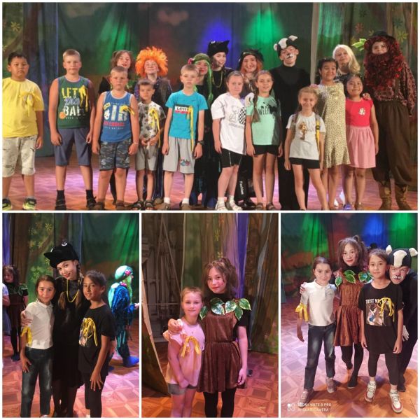 23.06.2022 ж " Күн шуағы" мектеп жанындағы жазғы лагерь театр күніне арналды. Балалармен бірге қалада орналасқан " Балалар мен жасөспірімдер сарайында" "Домовенок Кузя" атты ертегі желісі бойынша қойылған қойылымын тамашалады. Қойылымда жасөспірім балала