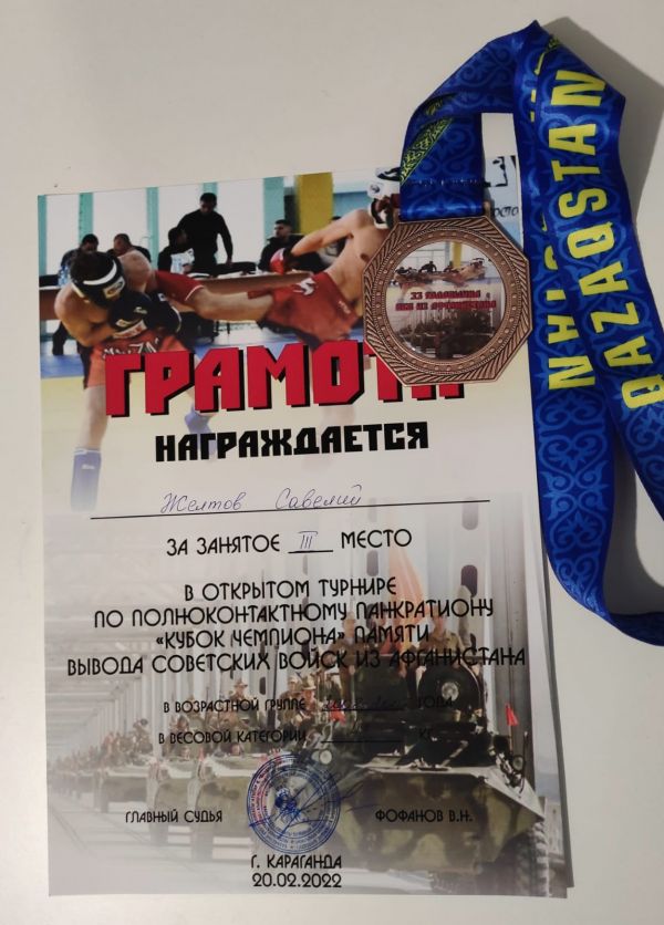20 ақпанда Қарағанды қаласында Кеңес әскерлерін Ауғанстаннан елінен шығарылуын еске алуға арналған Фул-контакт панкратионынан ашық «ЧЕМПИОН КУБОГЫ» турнирі өтті. Мектебіміздің 7 «Б» сынып оқушысы Желтов Савелий өз жас санатында 3 орынға ие болды. Савелийд