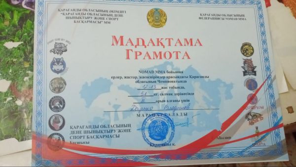 7 «В» сынып оқушысы Доценко Владислав Nomad MMA бойынша ерлер, жастар, жасөспірімдер арасындағы облыстық чемпионатында 12-13 жас тобында, 51 кг салмақ дәрежесінде 3-ші орын алып, жеңіске жетті. Жас чемпионды жеңісімен құттықтаймыз! Алдағы уақытта тек қан