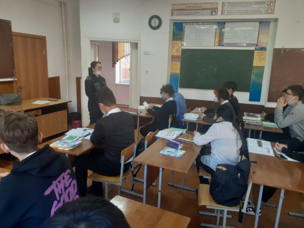 Кәмелетке толмағандардың әкімшілік және қылмыстық жауаптылығының алдын алу бойынша онкүндік аясында ОП-ның , полиция капитаны Н.С Шохановамен 8-9 сынып оқушыларымен әңгіме өткізді