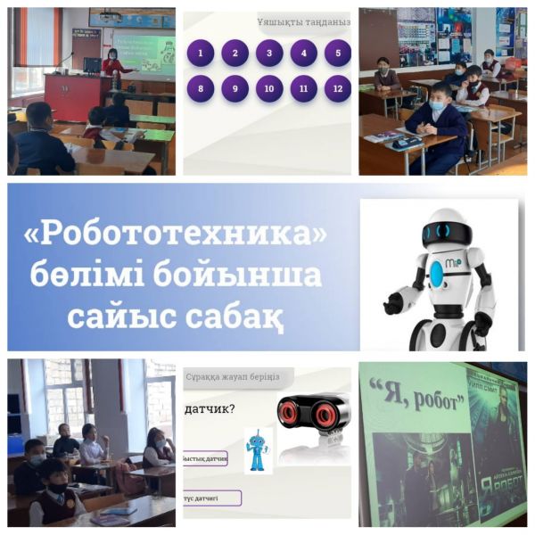 "Цифрлық әлем" ақпараттық сауаттылықты дамыту апталығы аясында информатика пәні мұғалімі А.Ш.Какимованың ұйымдастыруымен 5"Ә" сыныбында "Робототехника" бөлімі бойынша с…