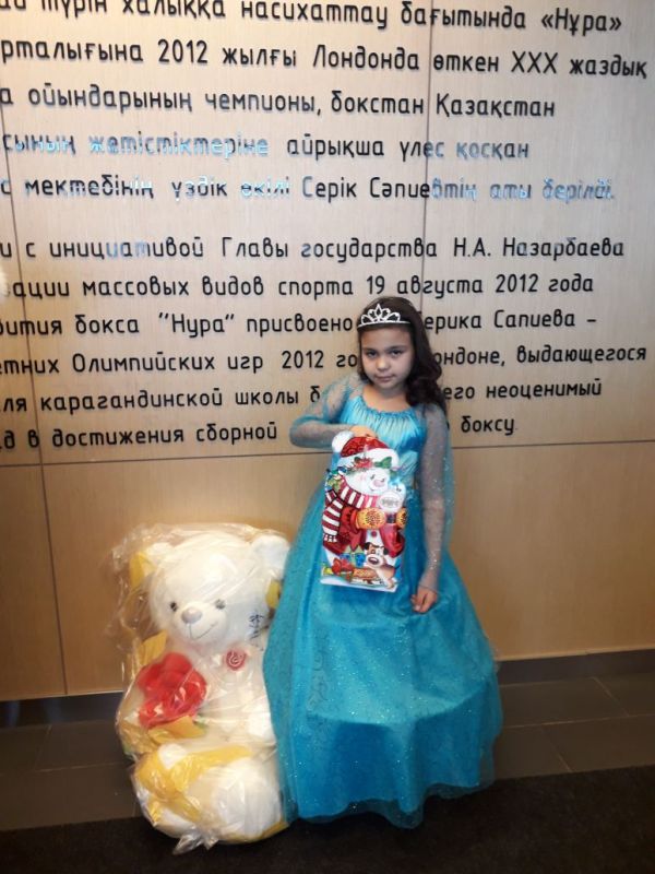 26 декабря 2017 года в 13.00 часов в Центре бокса имени С.Сапиева состоялась благотворительная Елка акима города Караганды. В ней участвовала ученица 2г класса нашей гимназии Русанова Диляра.