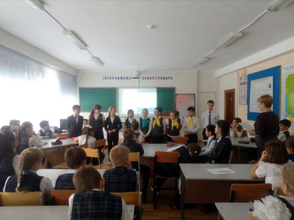 Учащиеся 9 в класса провели классный час «День Независимости Республики Казахстан» для учащихся 4 Г класса.