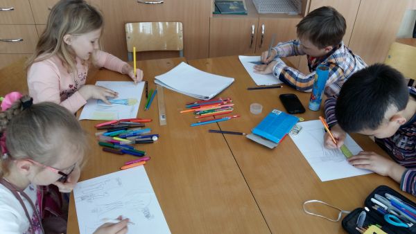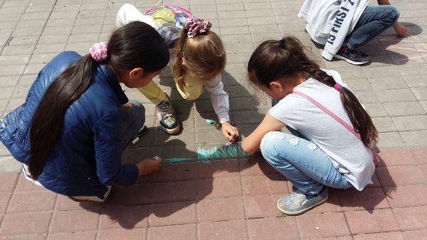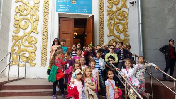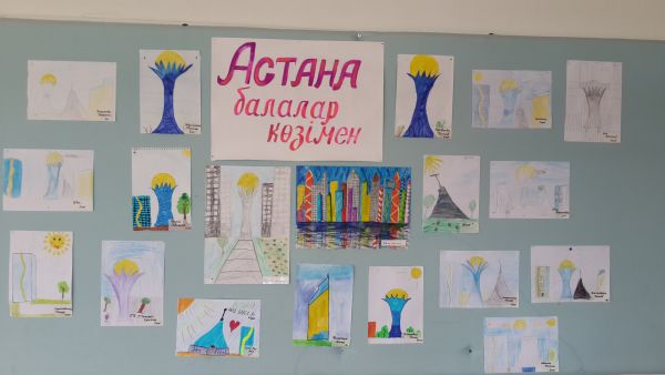 Мы уже оформили выставку рисунков «Астана балалар көзімен...» («Столица глазами детей...»). После завтрака сразу отправились в кинотеатр Сарыжайлау на праздничные мероприятия…