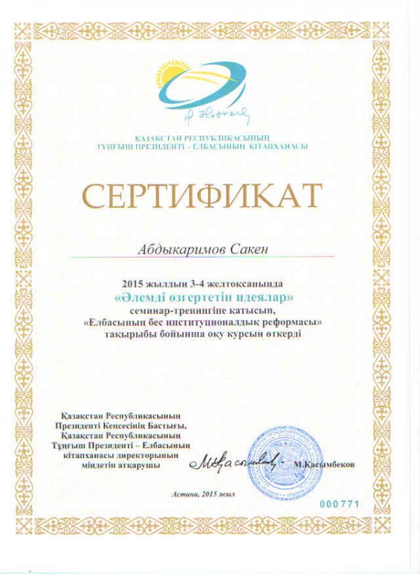 Государственное учреждение«Библиотека Первого Президента Республики Казахстан – Лидера Нации» с 1октября 2015 года по 11 марта 2016 годавплановом порядке проводит цикл двухдневных…