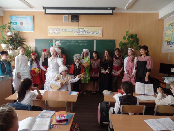 В рамках празднования Дня языков в КГУ «Гимназия №38»  учителя казахского языка Мамежанова Гульнара Манаповна и Сакимбаева Алмагуль Амангельдиновна  организовали праздничный ка…