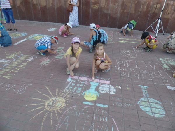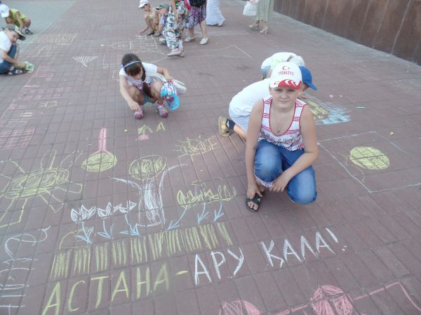 1 шілде күні бізді тосынсыйлар күтіп тұрды! Таңғы астан кейін біз Сарыжайлау кинотеатрына аттандық. Алдымен Астана күніне байланыты асфальтта сурет салудан жарыс жарияланды. Бұл жарысқа біз белсенді…