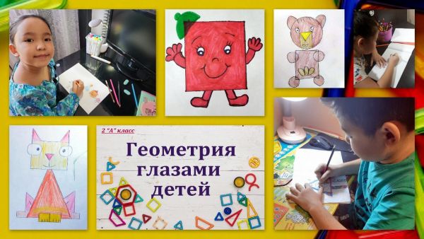 2 "А" сынып оқушылары суретшілерге айналды, шығармашылық көрсетті және көңілді адамдар түрінде геометриялық фигураларды ұсынды.