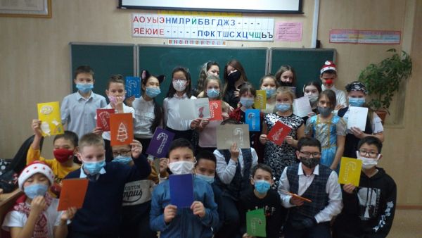 7В сынып оқушылары 4Г сынып оқушыларымен бірге өз қолдарымен туыстары мен жақындарына жаңа жылдық ашықхаттар жасады.