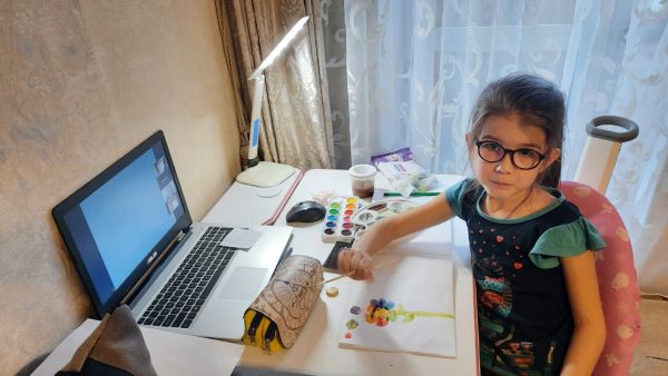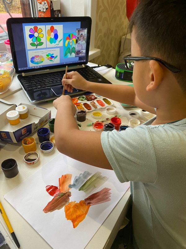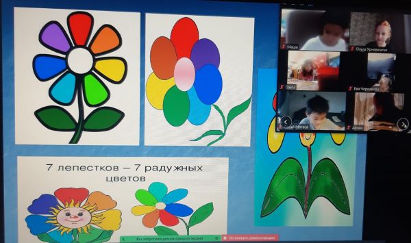 Балалар сиқырлы елде болып, бояуларды араластыруды үйренді, жаңа түстермен танысты, кемпірқосақтың барлық түстерінен таңғажайып жеті түсті гүл салды.