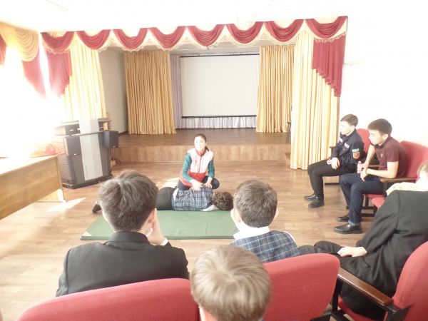 Волонтеры Общества Красного Полумесяца РК провели учебное занятие для учащихся 7 классов. Волонтеры тесно сотрудничают  со студентами отделения «Защита в чрезвычайных ситуациях» Кар…