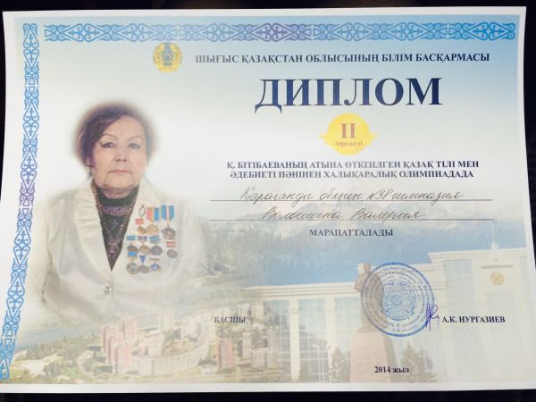 2014 жылдың 4-7 мамырында Өскемен қаласында   қазақ тілі мен әдебиеті пәні бойынша Қ. Бітібаева атындағы Халықаралық олимпиада өткізілді. Олимпиадаға №38 гимназиядан 2 оқушы қа…