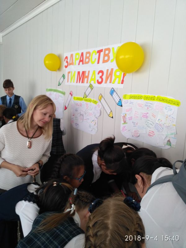 2018 жылдың 4 қыркүйегінде гимназияның психологиялық қызметі «Сәлем, гимназия!» Акциясын өткізді. Гимназиялар гимназия, мұғалімдер мен өздерінің жаңа оқу жылына деген тілектерін жазды. С…