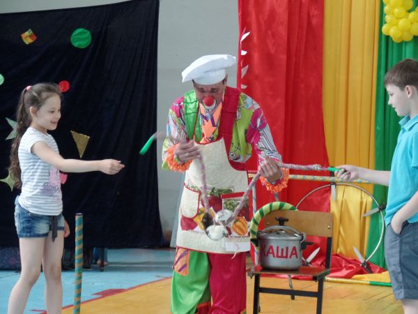 Таңертең біз жаттығу жасап, таңғы асымызды іштік... Содан кейін қызық басталды.. Қызықты цирк көрінісін тамашаладық! Мұнда клоун, көгершіндер, жанат басқа да жануарлар болды. Уақытты керемет өткізді…