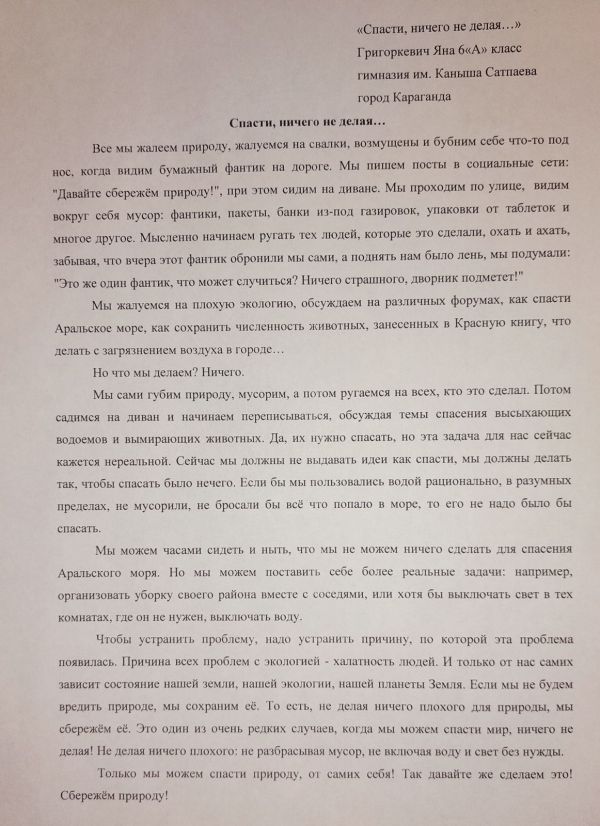 Григорьевич Яна 6а сынып " Ештеңе жасамай, сақтау..."