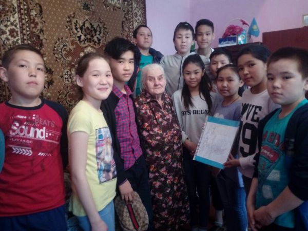 7"А" сынып оқушылары, ардагерлердің үйіне барып, құттықтап өз тілектерин айтып және мектепшілік концерттке шақыру билетин табыстады.