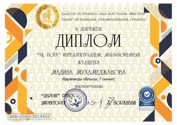 С 22 по 28 ноября 2020 года учащиеся основной средней школы - интерната N22 приняли участие в интеллектуальном марафоне "Ақ Бота", организованном Республиканским научно-практическим центро…