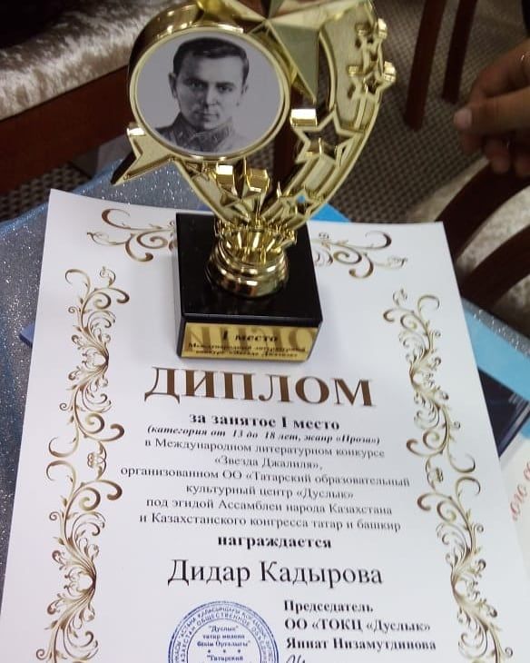 26 августа в Нурсултане проходила церемония награждения победителей международного конкурса Звезда Джалиля.Ученица нашей школы Кадырова Дидар заняла 1место.Руководитель проекта учитель английского я…