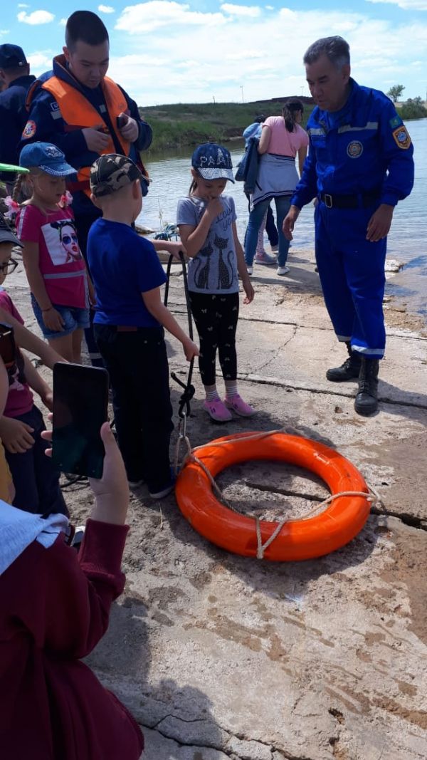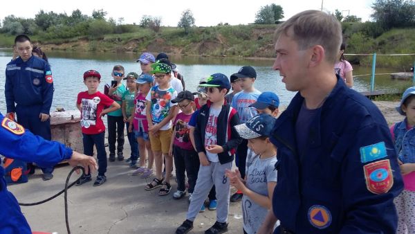 20.06 "КУАНЫШ" ЖСЛ-де "Қауіпсіз жаз" акциясы аясында балалар "Федоров" су қоймасында балып, құтқарушылар командасымен кездесті.