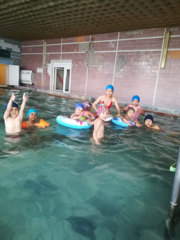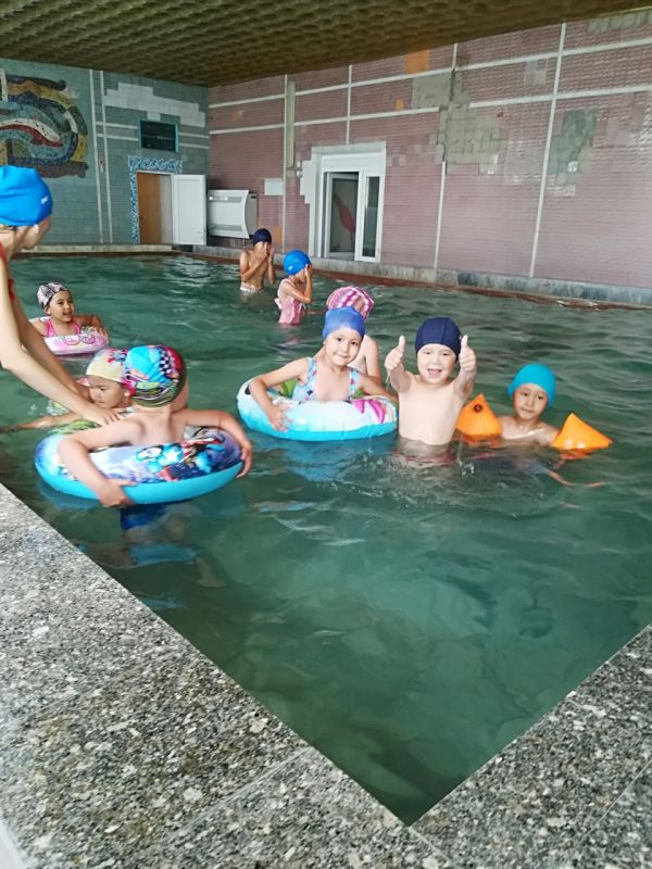 "ҚУАНЫШ" ЖСЛ-дегі тағы бір күн. Бұл күнді балалар әдеттегідей таңғы жаттығумен бастап, балалар "Дельфин" бассейініне шомылуға барды