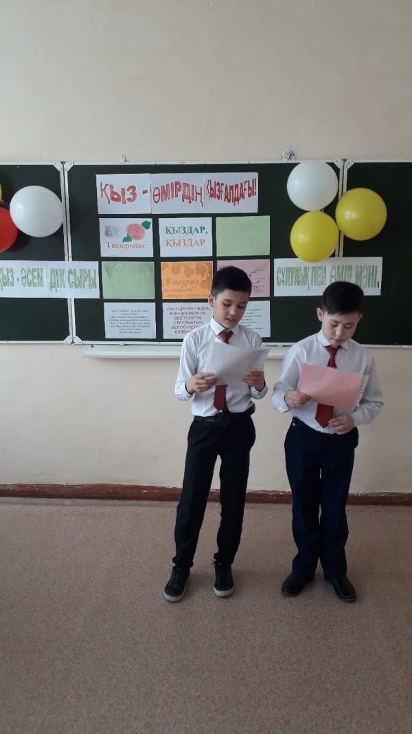 8 Наурызға қарсы 6 А сынып оқушылары "Қыз - өмірдің қызғалдағы" тақырыбында тәрбие сағатын өткізді.Жетекшісі Қонысбаева Жанерке Серикжановна