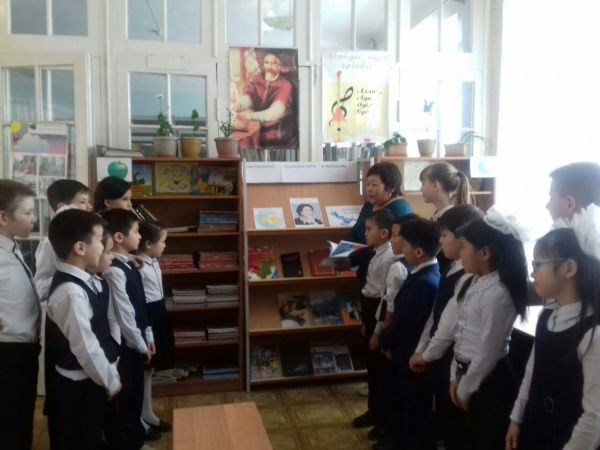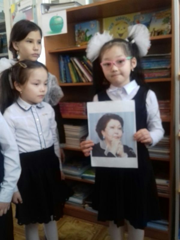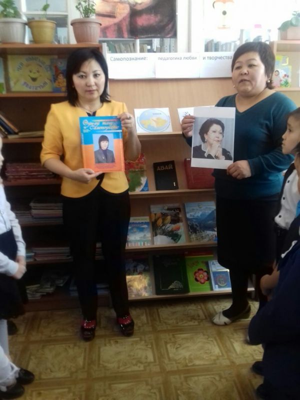Библиотекарь Акишева Р.Д.провела беседу учащимися 2-6классов о деятельности С.Назарбаевой и центре "Бобек".
